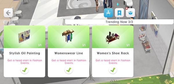 The third head start item unlocked in the Fashion Studio is the Women’s Shoe Rack. It costs 85 SimCash and has the description, “Get a head start in Fashion Events,” but the head start effect doesn’t actually work at all for this item.