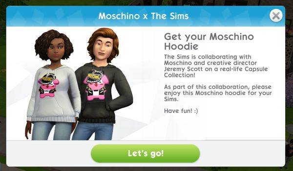 With the in-game update, everyone is getting free Moschino hoodies for their Sims!