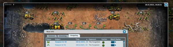 2.- Why null (0) inside Outpost 40 and where is the yellow/red alert icon?
