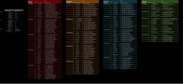 Heres a complete sheet of all combinations [Boxing, Kickboxing, Muay Thai, Traditional]