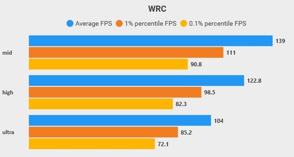 Ultra @1440p gets me about 70-80fps with dips to 50-60 on most rallies, some rallies like monte carlo drop to 30-40.