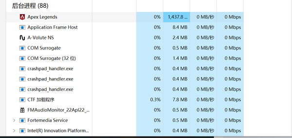 在游戏中点击退出游戏,steam页面会卡在正在游戏的状态,点击强制关闭会卡在正在关闭,进入任务管理器结束进程也无法杀死apex进程,只能重启电脑