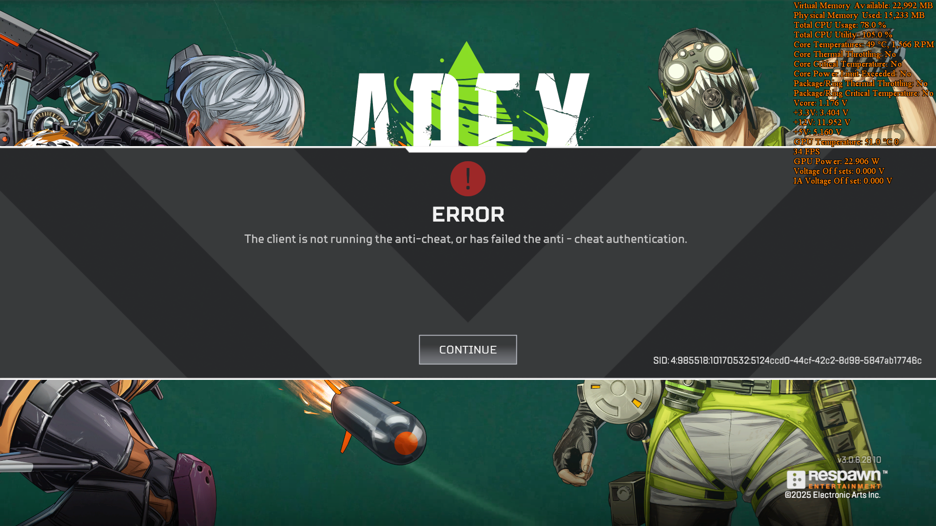 Error "message the client is not running the anti cheat or has failed the anti cheat authentication"