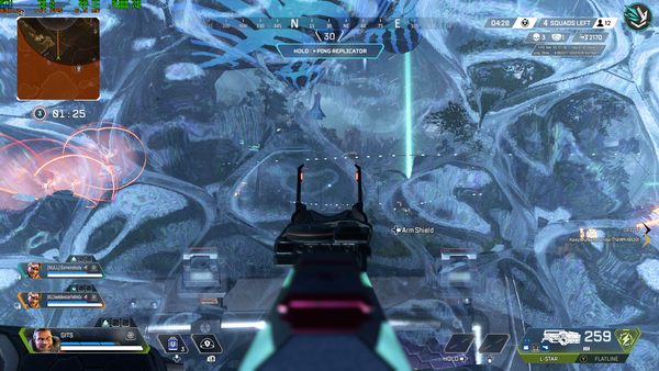 Anytime you are playing Gibby, in firing range, mixtape, and battle royale, when you aim down sights as gibraltar his shield looks different than how it should look. It seems brighter, as if its using the world's version of the arm shield and not the first person view of the arm shield. you can notice all the ripples in the shield, and it gets in the way of some scopes depending on what weapon you are using. its still transparent so you can see through it but it can throw people off while aiming.