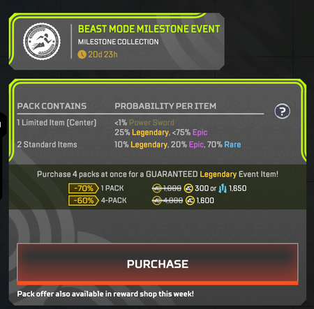 Currently i own 1 event item and the pack's price is 300 AC, even though in the info tab it says that for 0-1 items owned, the packs cost 100 AC
