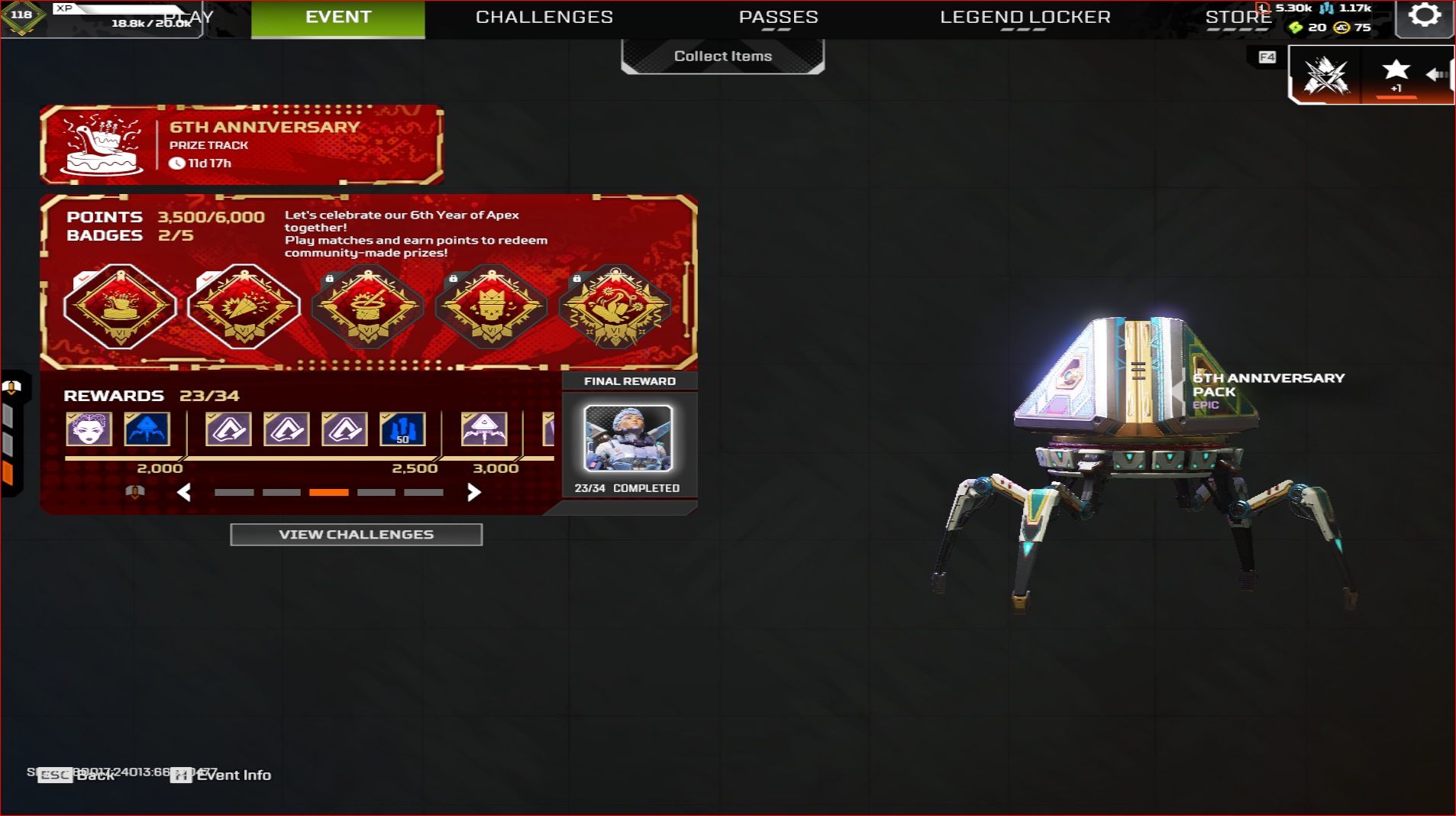xTunnNew Spectator11 months agoNo anniversary pack for reaching the 3000 point thresholdI recently got to the 3000 points however I was not granted the apex pack.anniversary items.PNG1.8 MBapex pack.PNG1.5 MB