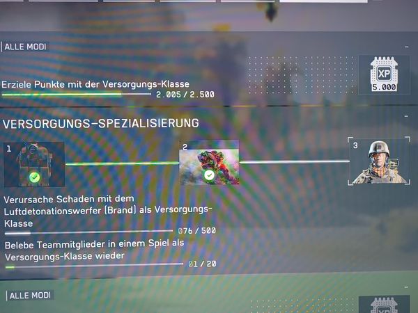 Ich habe den Medic-Fortschritt in der Supporterklasse bis zum letzten Punkt abgeschlossen und befinde mich aktuell bei der Aufgabe „Versorgungsspezialisierung: Verursache Schaden mit dem Luftdetonationswerfer (Brand)“.