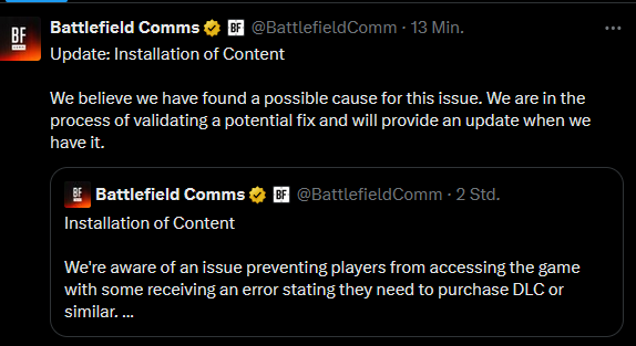gestern kam es zu einem Ausfall der EA-App, der einigen Spielern, die Battlefield 6 vorbestellt hatten, den Zugriff auf das Spiel verwehrte. Wir wissen, dass das frustrierend sein kann, deshalb möchten wir uns entschuldigen … mit Extras.