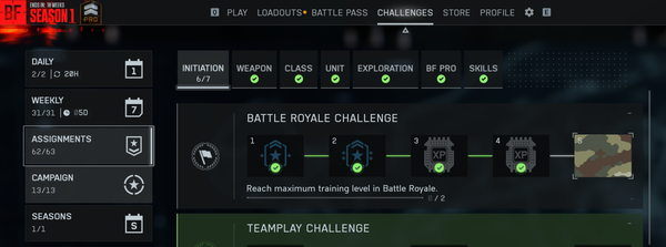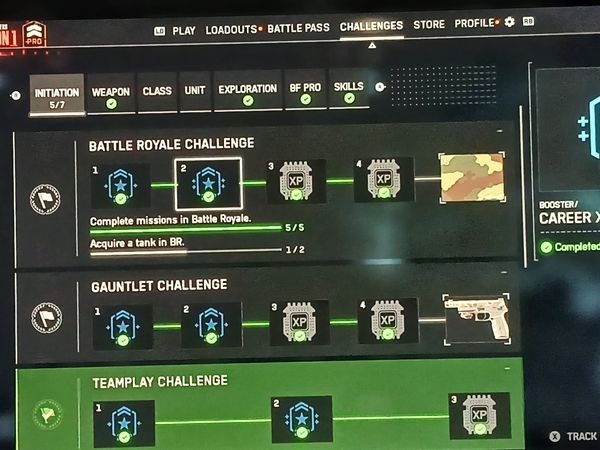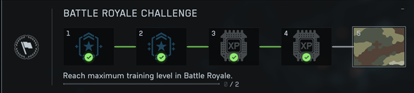 Level 5 "Reach maximum training level in Battle Royale" doesn't track. Ingame when you complete the level 4 training it restarts that level again and again. Of course it doesn't track also the challenge. I dont have a video but you can easily verify my report.