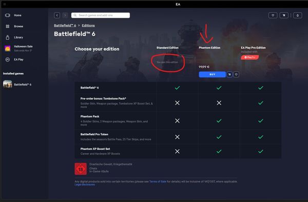 By the way, EA Support wasn’t able to fix the problem. After several hours and days, they just manually assigned me the Phantom upgrade — but it still only shows as the Standard Version.