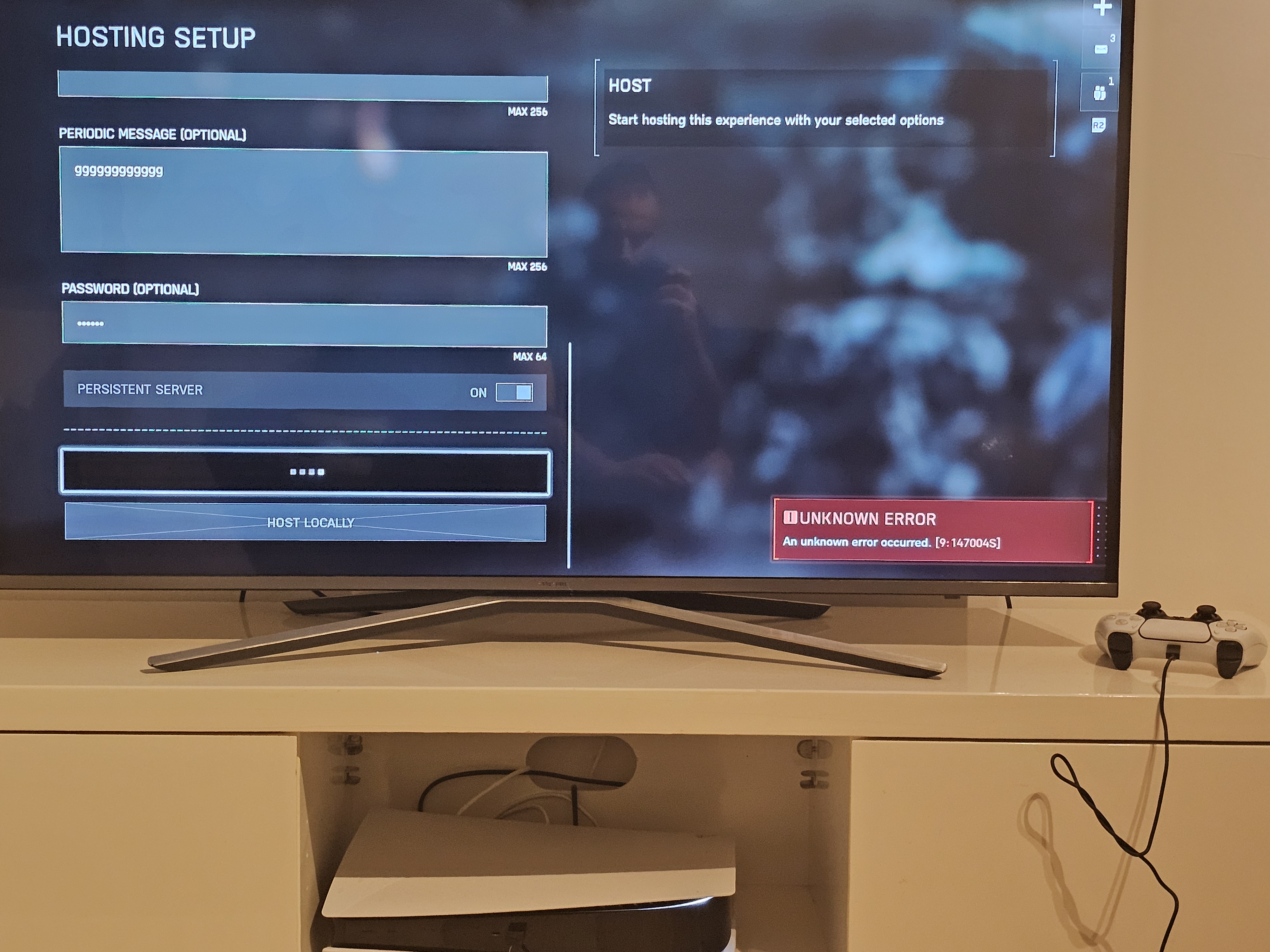 Subject: Unable to host server – Unknown Error 9:147004S (PS5)