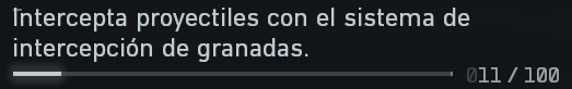 It doesn't let me progress more than 11/100 "Grenade" projectiles intercepted by the device