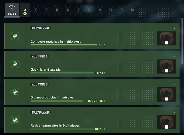 As Season 1 was released, the Week 1,2,3 has now dissapeared and was replaced with new battle royale challenges so this issue is fixed.