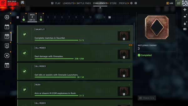 I have managed to complete all Challenges during week 1 and even saw all of them finished. After I relogged into the game, I see that I've completed only 9/10 challenges but as you can see, all of them are completed. It seems that one of the challenges got bugged but I do not know which one it is.