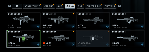 I have the same problem with the KTS100 MK8. I completed the challenge, but it's locked. Then I did the challenge for the second LMG, and I can equip that one. I tried re-doing the challenges from the first challenge, but that didn't work either. I even uninstalled the game, but that didn't help either. Now, thanks to Redsec, I've leveled the KTS to 10 and unlocked the War Operations variant, and I can equip that one, but I can't change any attachments, and the regular KTS is still locked. Fix your game!