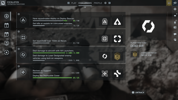• Challenges: “Resupply teammates with the Supply Pouch” is not tracking progress.