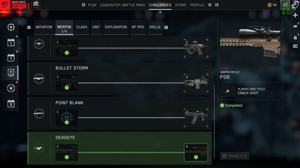 Also have the Deadeye challenge that will not unlock after the update. I purchased the BattlePass but also cannot upgrade my PSR from battle pass. Is there a patch planned to fix this? I tried work arounds on youtube and internet but none have worked.