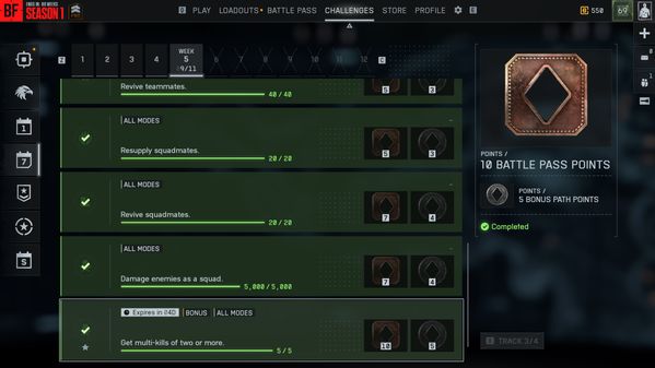 Completing this week's multi-kill challenge didn't give the reward. This is a completed challenge (I've had 0 points on my battle pass and 6 on the bonus path)