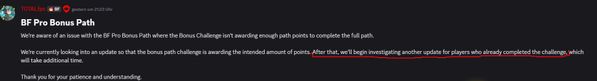 According to a message by TotalFPS on discord they should be working on a fix also for those who completed the challenge before the fix.
