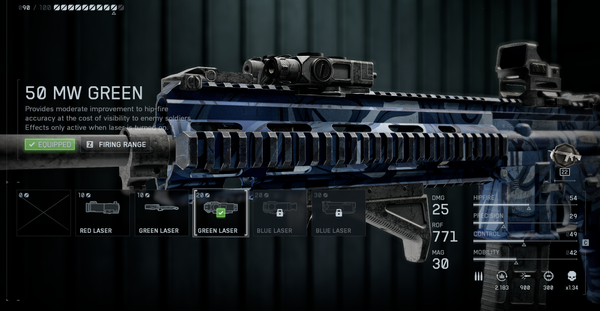 In the pictures below you can see my hipfire still remains at 54 with both lasers attached.