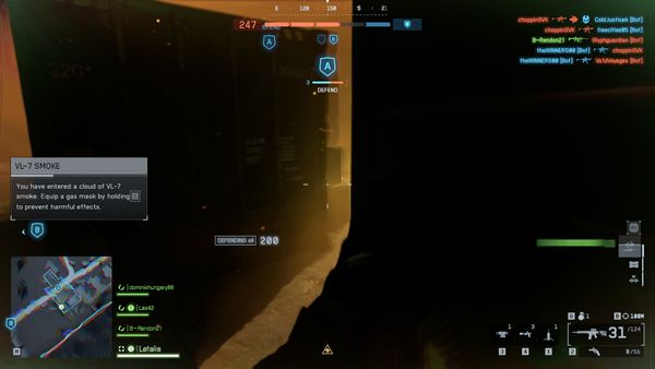 3. Map is Loaded with Gas and Gas Mask Action is locked.