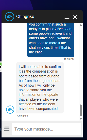 my most recent contact I have recieved this:Thank you for the wait. Okay so I would like you to know that a compensation was sent out to EA App players who purchased BF6 and were unable to install or effectively launch the game. Studio have confirmed that all players who were affected by the incident have been compensated unfortunately if you did not receive the compensation that means you are unfortunately in-eligible for the compensation. If you feel you were affected by it and then did not receive it then I would suggest you to wait for sometime as there might be a delay in receiving it too.