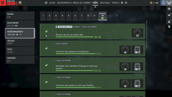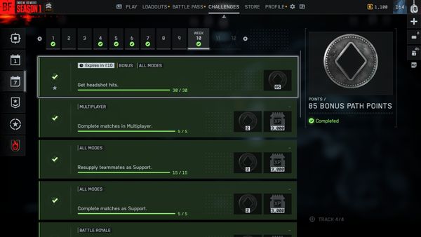All the quest from week 10 have been achieved but the bonus branch has stopped with the first three items.
