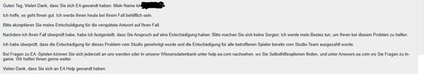 This one is in German and they told me after they checked my case I would have a claim to the compensation and they would to their best to help with my issue, but in the next sentence they say all affected players already got their compensation.