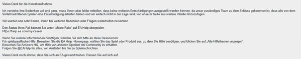 I do not think any of us will get the compensation any more but I just want to share my experience and make sure people do not forget how EA treat their costumers.