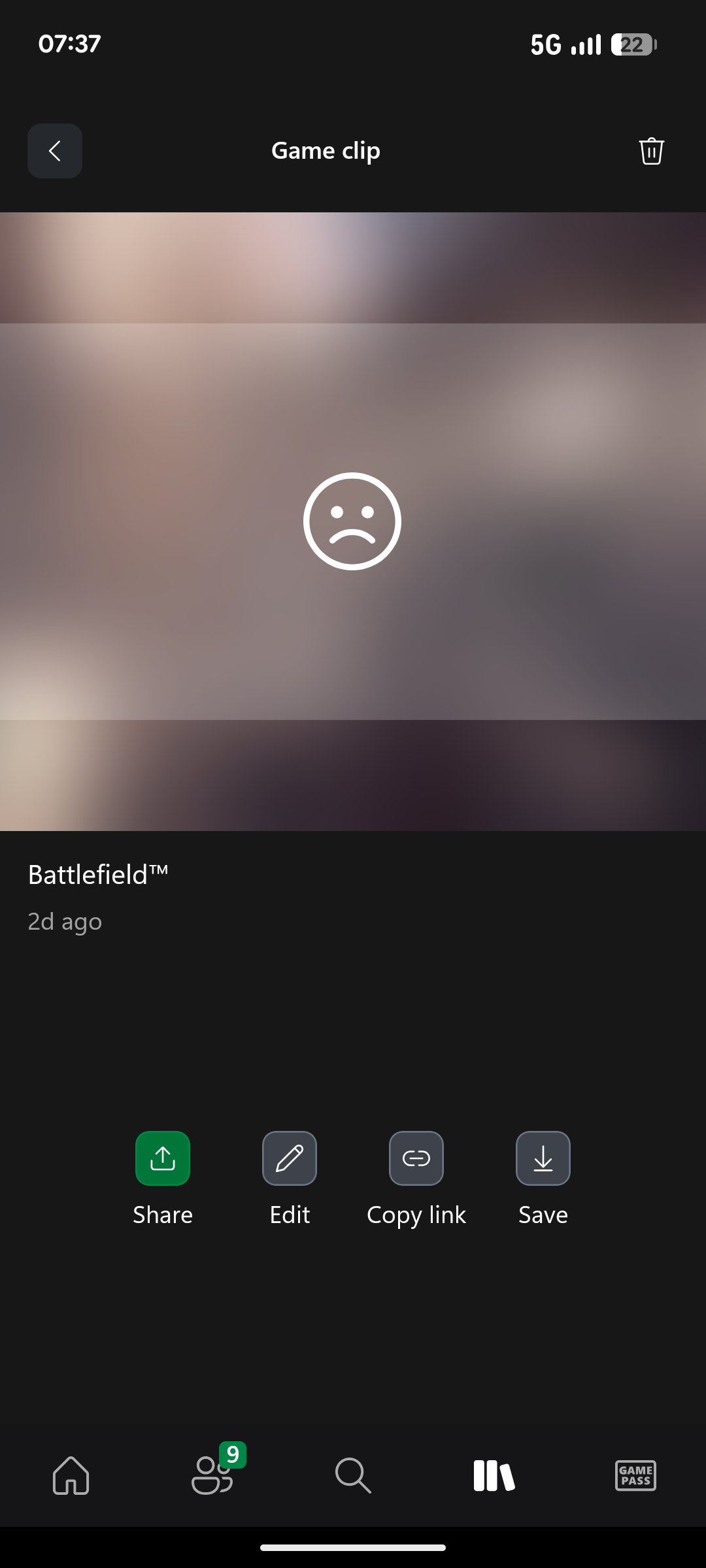 When I record a clip from bf6 on my Xbox series x it comes up with a sad face and won't let me see the capture.