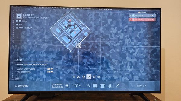 The redeploy timer was stuck on 12 seconds, and I could see the game going on without me on the map (the objective moving / being captured, etc.)