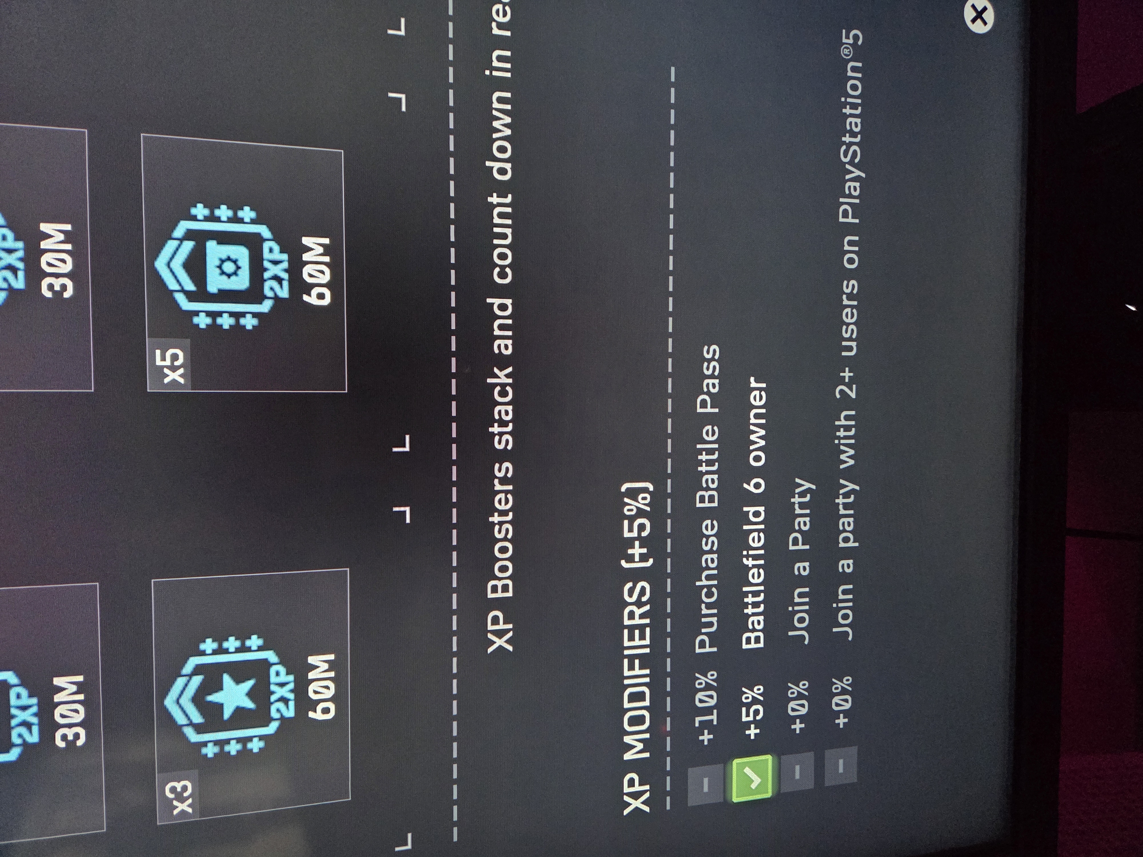 Purchased BFPro which comes with the battle pass, but when you pull up your xp tokens in the xp modifiers section the +10% is not activated. Also under BFPro in the battle pass screen it says we are supposed to get a 15% xp bonus also, but that's not even listed under xp modifiers.