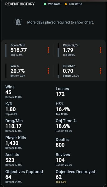 I had 1.8 at the time with only RedSec modes playtime.......Gauntlet and BR Quads,NO BOTS,NO PORTAL........now I am 1.1 K/D