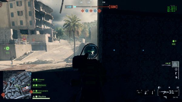 As you can see, the screenshot shows black edges around the screen, creating a scope-like effect even though I am not aiming. It provides no benefit at all, and the image becomes very blurry, which interferes with my controls and aiming. This bug appears for a few seconds for no reason, then disappears, only to show up again after a few seconds. It keeps repeating and is extremely frustrating.