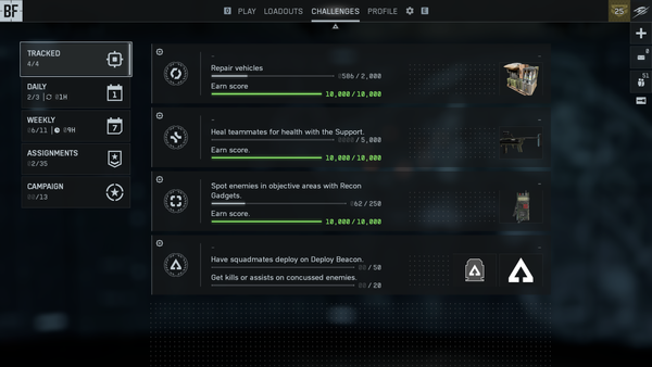 My friend has also told me they are having issues completing both the Assault Specialist and Support Specialist challenges too, so it's likely that several assignments are not tracking properly. These latter ones are particularly troublesome as you need to complete them to unlock gadgets.