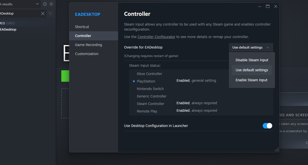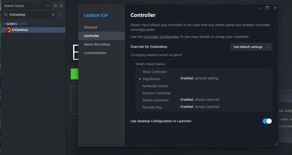 How did you get Steam overlay/controller working ? When I add EA App or bf6.exe as a non-steam game BF6 only ever detects the physical Dualsense not the Steam controller.