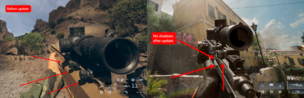 Yes, it ruined the games look, it was very cohesive. Now, without the weapon shadows it just looks wrong.