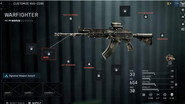 The same problem is plaguing me. I have unlocked things, but I can't access the guns or equipment. For example, my NVO-228 should be unlocked and is not. Although I unlocked warfighter version, I cannot change any attachments on the warfighter, its super broken!