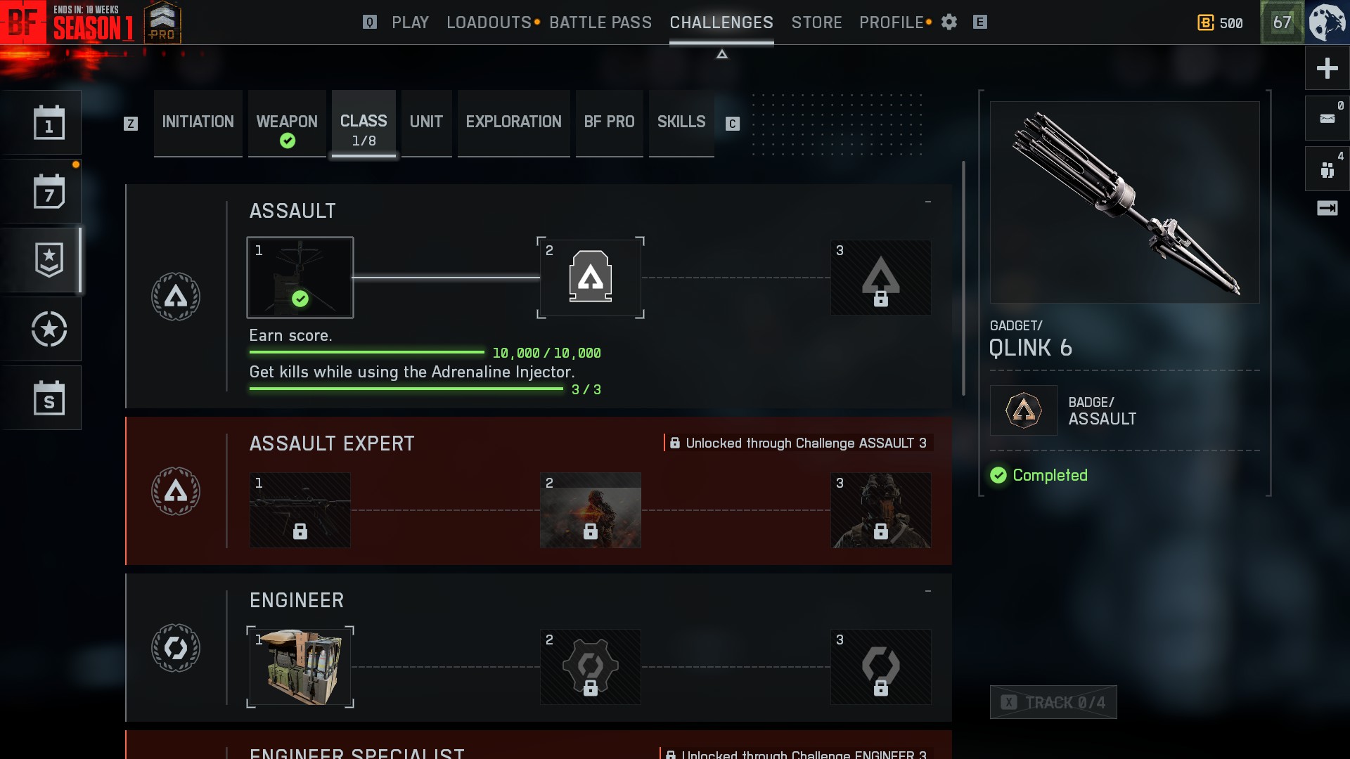 My situation is the same. Even though I completed Challenge Assault 1 and Challenge Support 1 the rewards did not unlock.