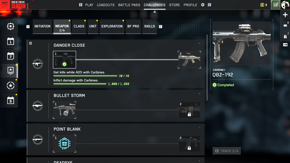 Same issue across all classes: KORD 6P67, QBZ-192, SL9, KTS100 MK8. Challenges are marked as completed, but no unlocks for a week.