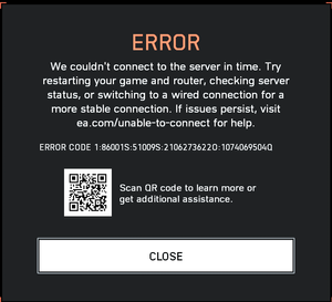 Точно такая же проблема. Причем с релиза всё окей, сегодня днем игралось спокойно, а в один момент кикнуло с матча с этой ошибкой и теперь не дает играть