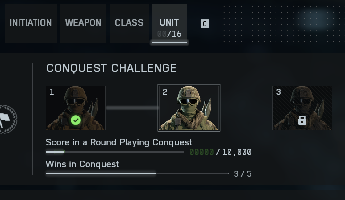 Для примера Conquest challenge. Шкала частично заполнена, выиграно 3 матча из 5, но цифры стоят на нуле