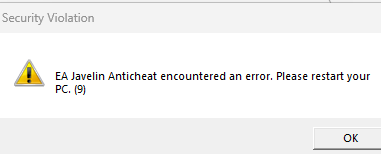 i have the f1 game on steam and every time i try play it it says faild javilin anti cheat pls rest your pc every time i reset it still dosent work