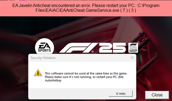 - The game f1_25.exe exited unexpectedly, exit code: 0xC0000005