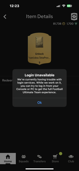 On PC and Mobile APP when i click 'Ok' on error prompt I get automatically logged out. In-game on PS5 I get same error message and pack gets removed from Store until I logout and login again.