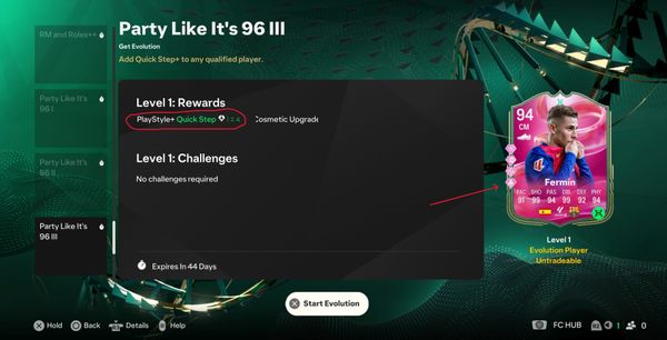 Quick Step+ Not Applied After “Party Like 96” Evolution on Fermín