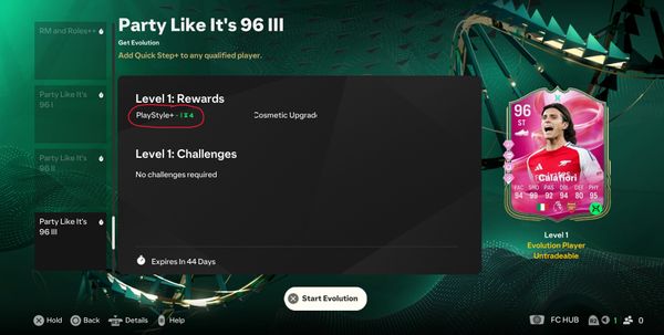 I applied the Party Like 96 Evolution to my 91-rated Fermín card (already evolved to 95). All the Evo requirements were clearly met