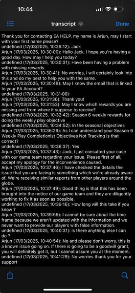 Season 6 Weekly Play Completionist Objectives Not Tracking