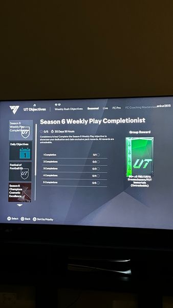 Season 6 Weekly Play Completionist Objectives Not Tracking