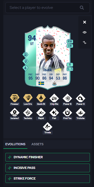 EA_VendceraI used Isak Thunderstruck then put him into Dynamic Finisher > Incisive Pass > Strike Force > FUT 18 Cosmetic Evo